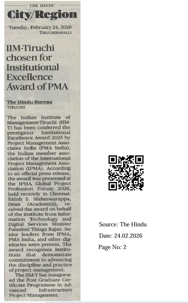 Honour for IIM-Tiruchi Director